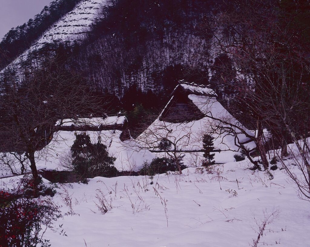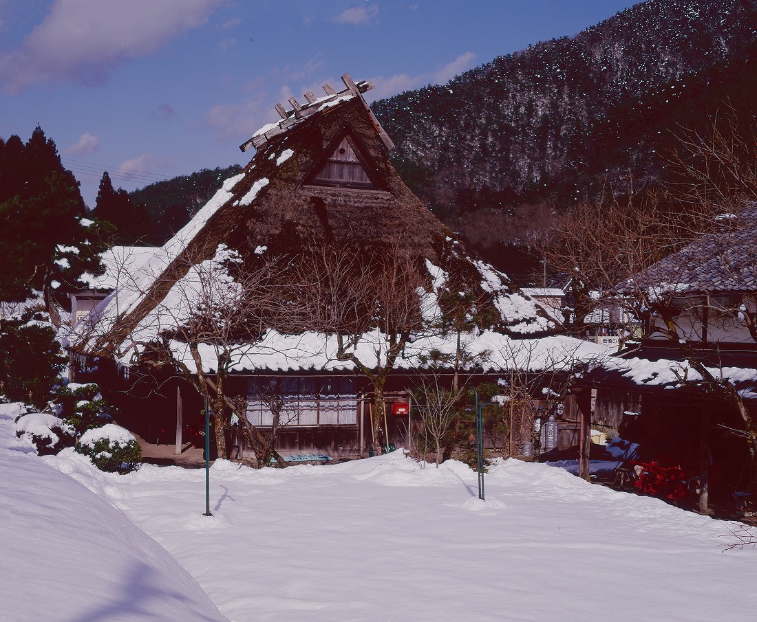 美山は「ABOUT」に書きましたが、茅葺民家を長年に渡り撮影するきっかけとなった地です。大学時代、京都市内に住んでいましたが、そこから始まる周山街道を美山へ。就職後も実家のある大阪から、東京に転勤するまでの3年間、足しげく通いました。その割には大した写真はありません(汗)。しかし、月日が流れ、撮影した民家のほとんどは現存していません。平成に元号が改まった後の数年間は、茅葺民家が普通に存在した最後の時期でもありました。その時代の美山の里を記録した写真としてみてもらえれば幸いです。写真は後年撮影したものを除き、全て中判カメラで撮影したものです。10枚撮りのフィルムはとても貴重でした。そして、フィルムの装填は時間がかかり、装填中に日が陰ったりして、何度シャッターチャンスを逃したことか…デジタルカメラとなった今では考えられない、なんとも懐かしい思い出です。